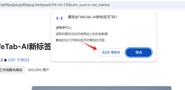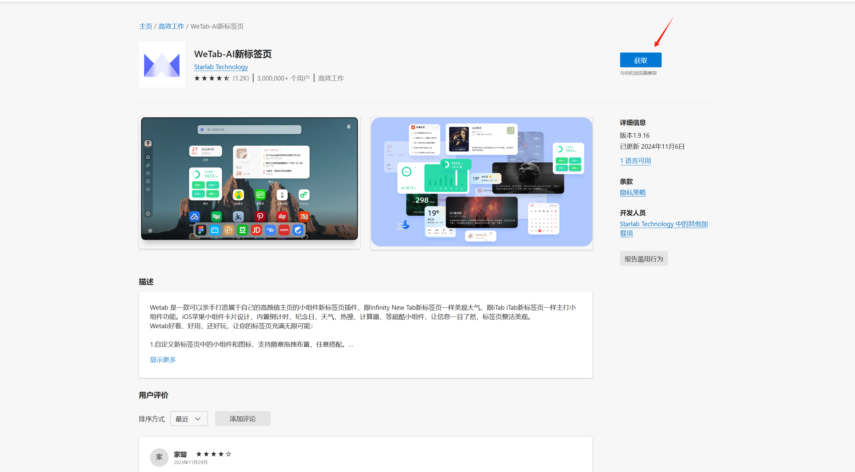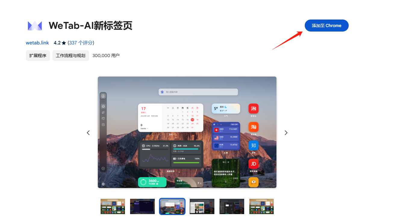 点击进入WeTab新标签页的Chrome扩展商店页面;