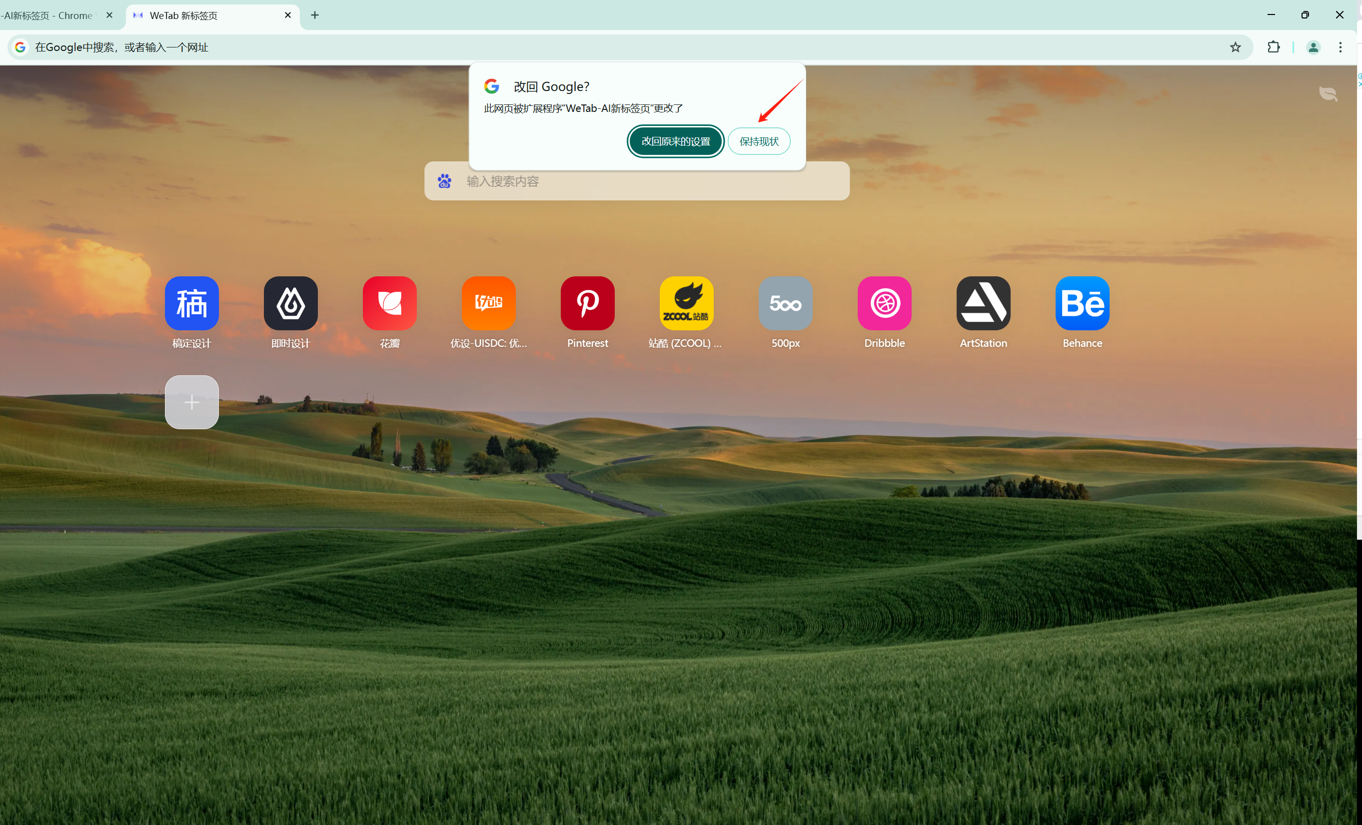 浏览器主页及新标签页将自动替换为WeTab新标签页。