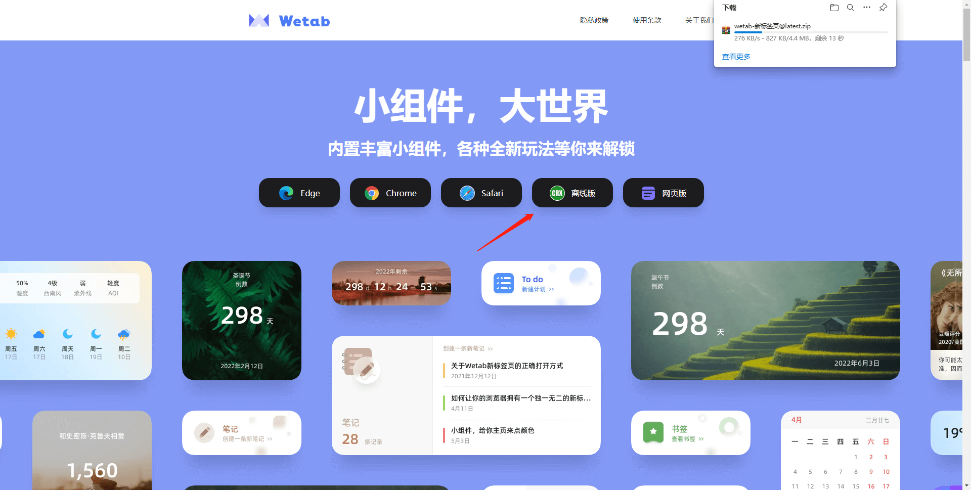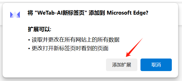 点击进入WeTab新标签页的Edge扩展商店页面;