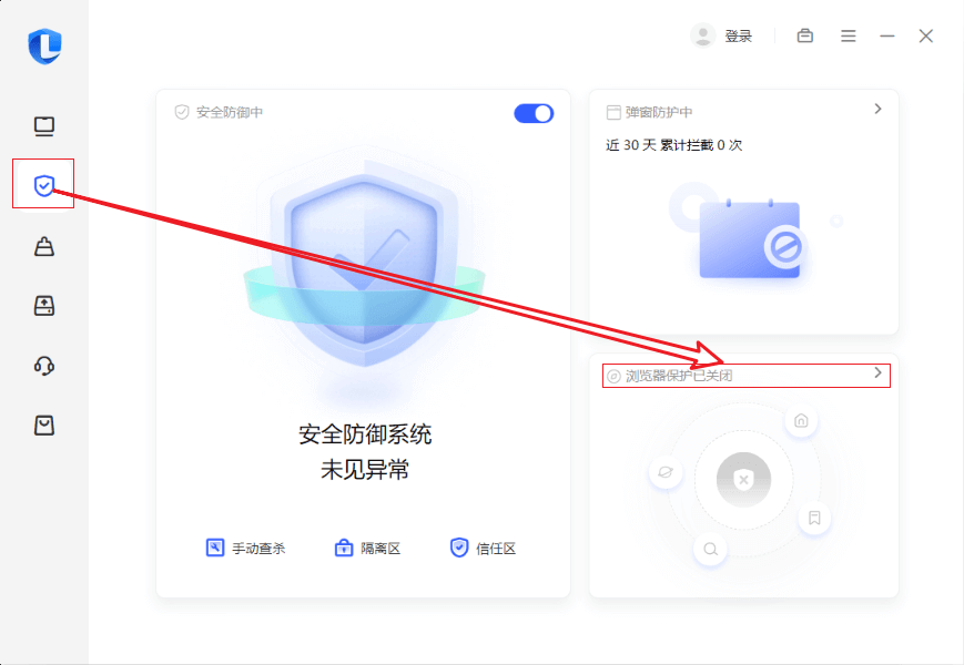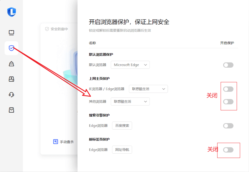你需要:打开联想电脑管家,点击左侧的安全防护,再点击右侧的浏览器保护;